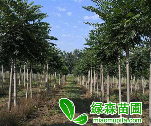 臭椿本身會散發臭味,在中國北方比較多見,臭椿生長迅速,但是壽命很短,一般不會超過50年。臭椿和很多其他樹種不一樣,它在石灰巖地區也能生存,而且長勢較好,因此在很多石灰巖地區用來綠化,改善生態。在很多工礦區,也會用它來凈化空氣。臭椿全身用途較多,樹皮、根有藥用價值,木材質量較好,可以做家具,它的葉子也可以用作飼料。在綠森苗圃,很多客戶非常看好臭椿,認為其用途多多。臭椿樹形美觀,比較抗風,春秋遠看顏色都不一樣,秋季有果實,色彩明艷,適于觀賞,很多國家都有種植。