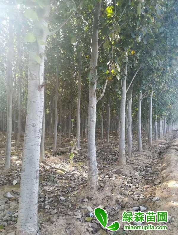 毛白楊成材率高,木材紋理、結構較好,而且濕度不高,易干燥加工。毛白楊生命力旺盛,適應力強,耐干旱鹽堿,因此壽命也很長,同時樹形美觀,所以很多人愿意種植毛白楊。在綠森苗圃,很多人都非常看好毛白楊,認為其好種植而且本身壽命長,綠化則可以用很多年。